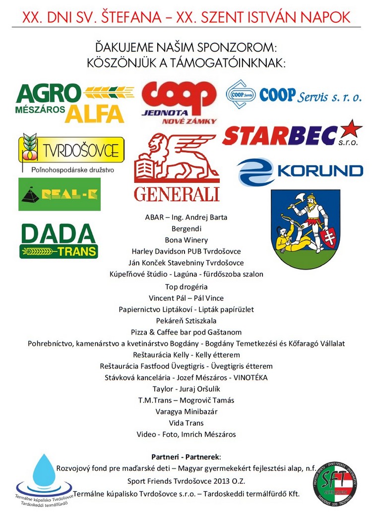 Termálne kúpalisko Tvrdošovce oznamuje svojim návštevníkom, že otváracia doba kúpaliska bude počas XXI. Dní sv. Štefana nasledovná: